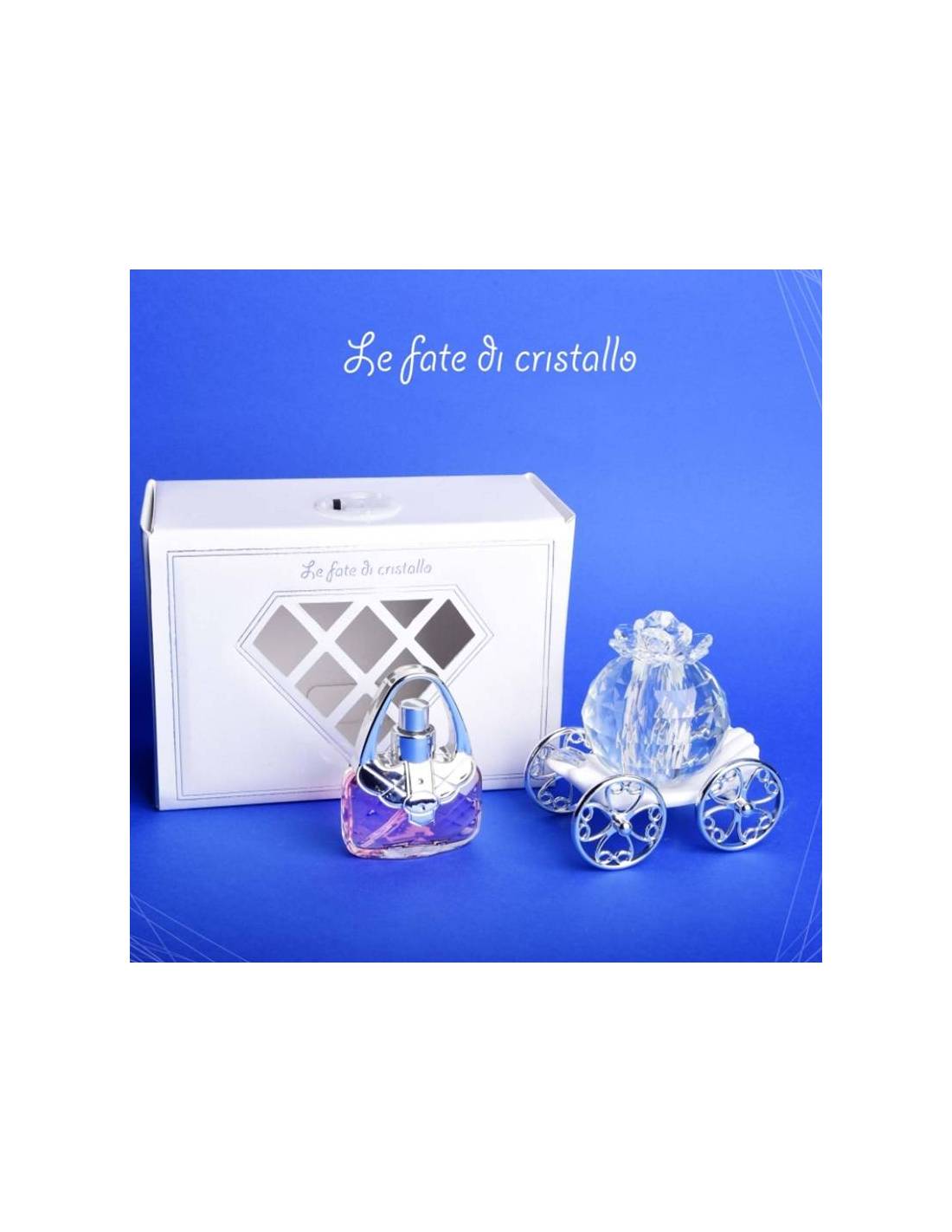 Le Fate Di Cristallo bomboniere carrozza argentata e boccetta profumo borsetta