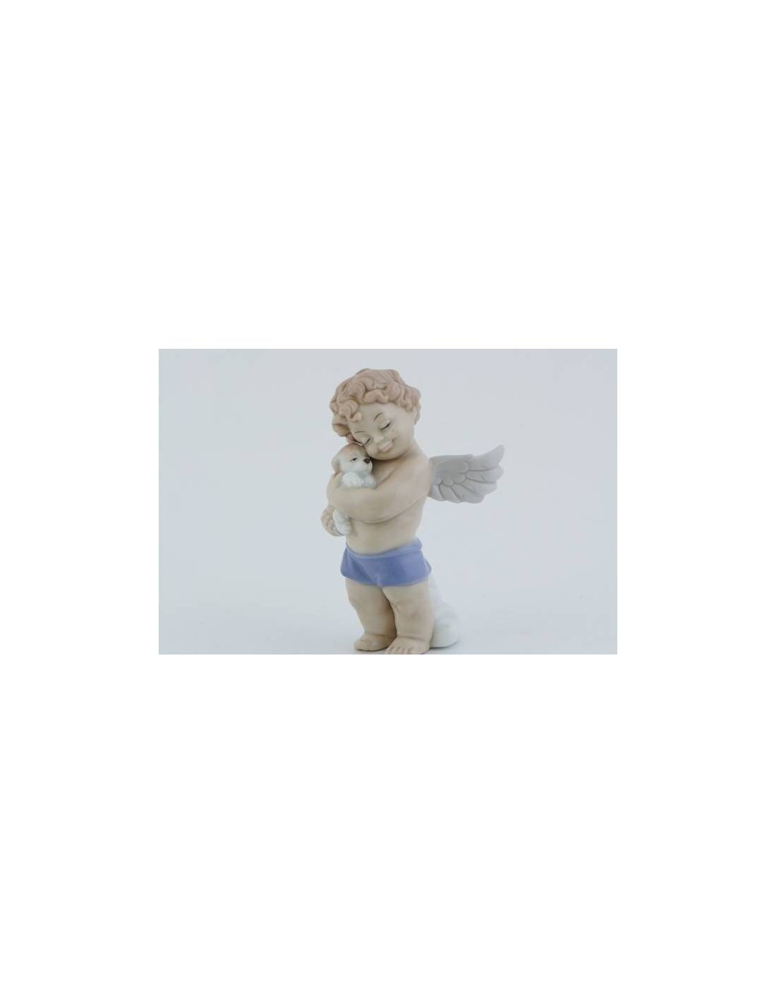 Bomboniere Statuina di un angelo in piedi con cucciolo in finissima porcellana MORENA