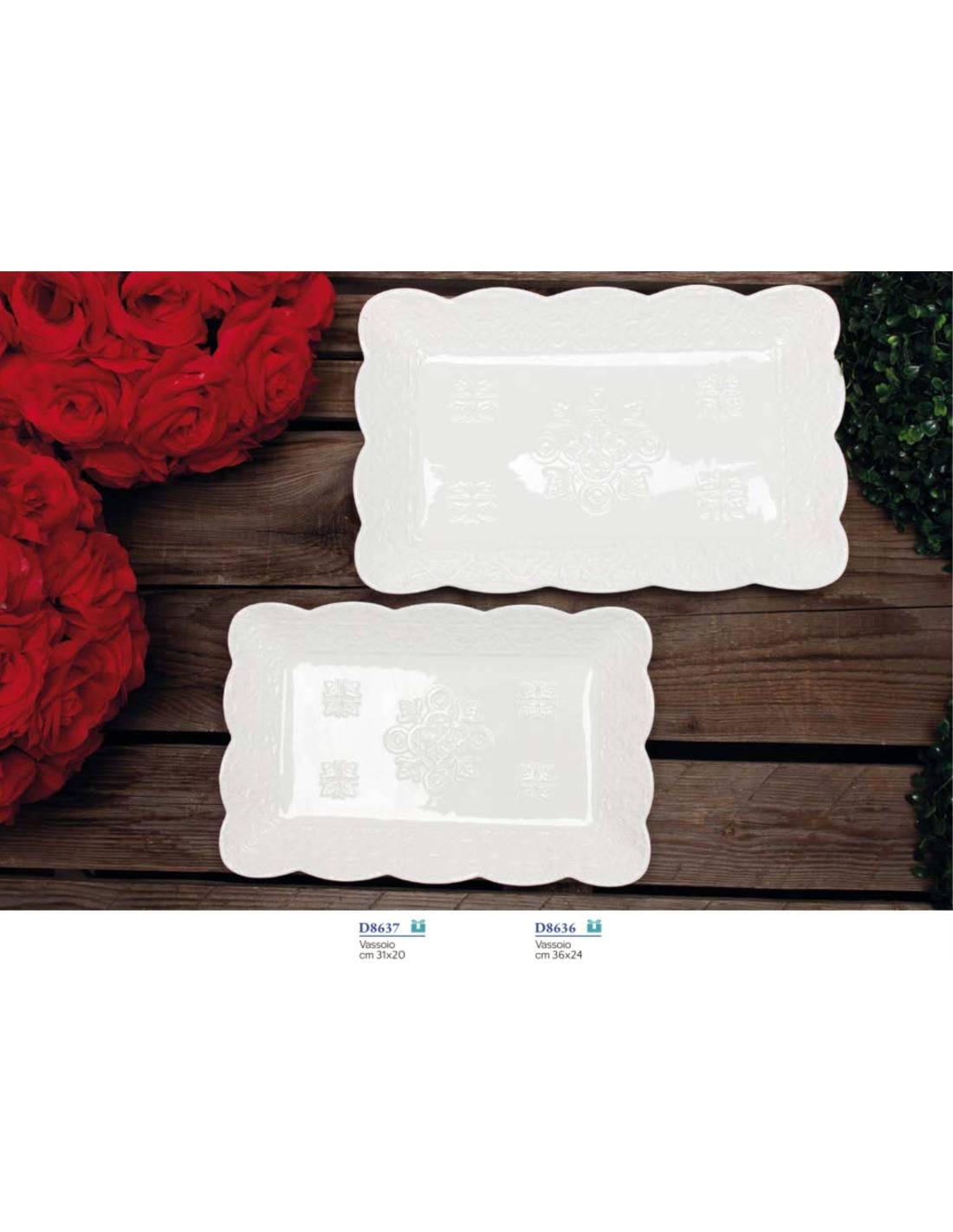 Cod.8 - D8637 - Bomboniere porcellana bianca vassoio medio (31x20cm circa);
