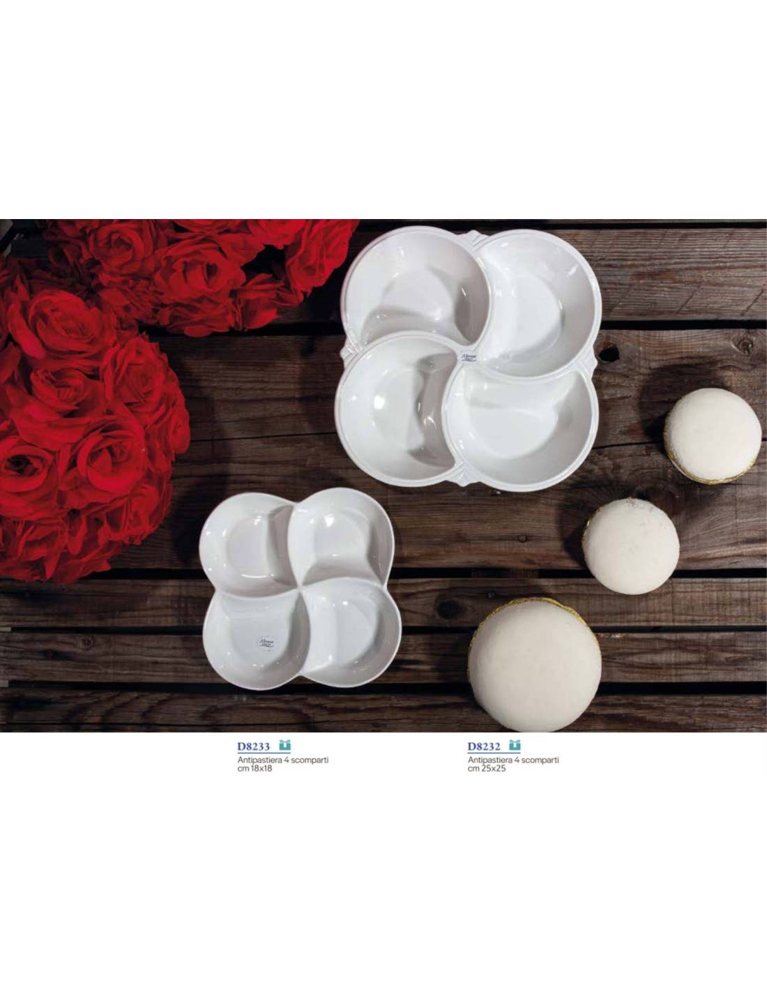 Cod.5 - D8232 - Idee bomboniere Matrimonio antipastiera grande 4 scomparti (dimensione 25x25cm circa);