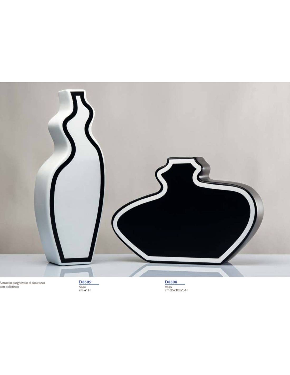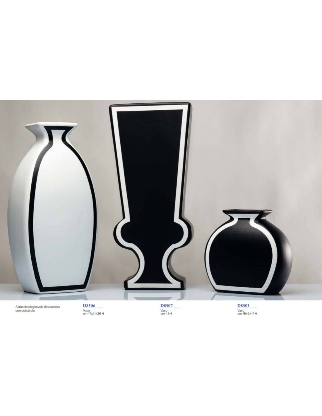 Cod.2 - D8506 - Bomboniere vasi ovali bianchi con linea nera (dimensione 17x11x36h cm circa);
