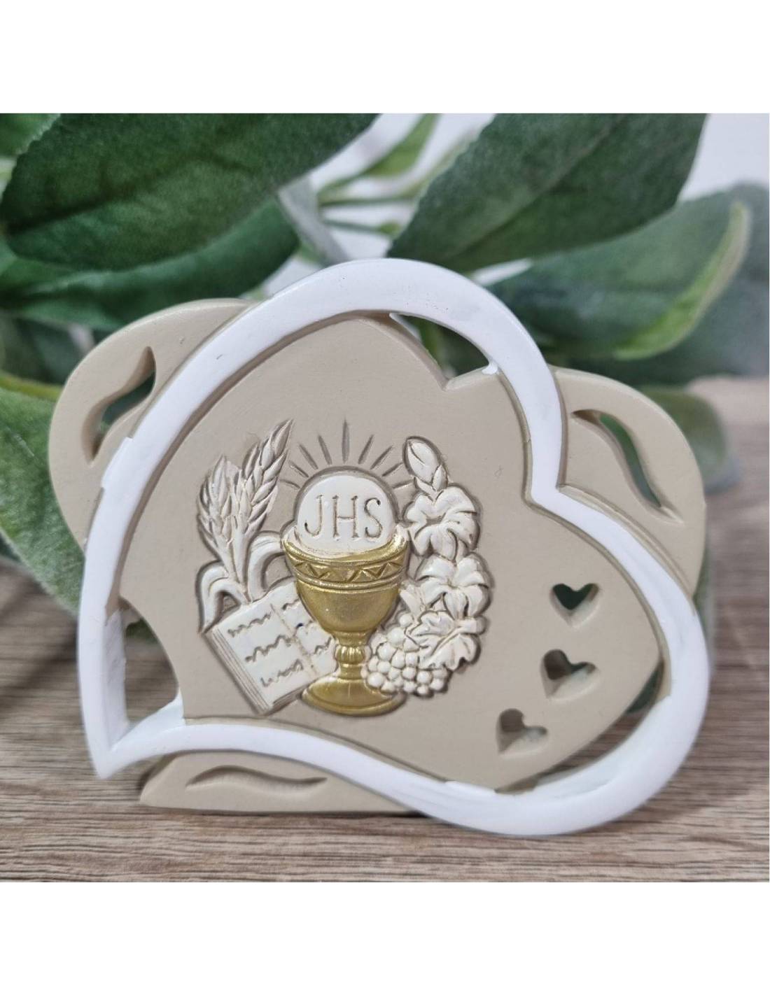 Collezione bomboniere Prima Comunione 2023, un bellissimo cuore raffigurante tutti i simboli del Sacramento.