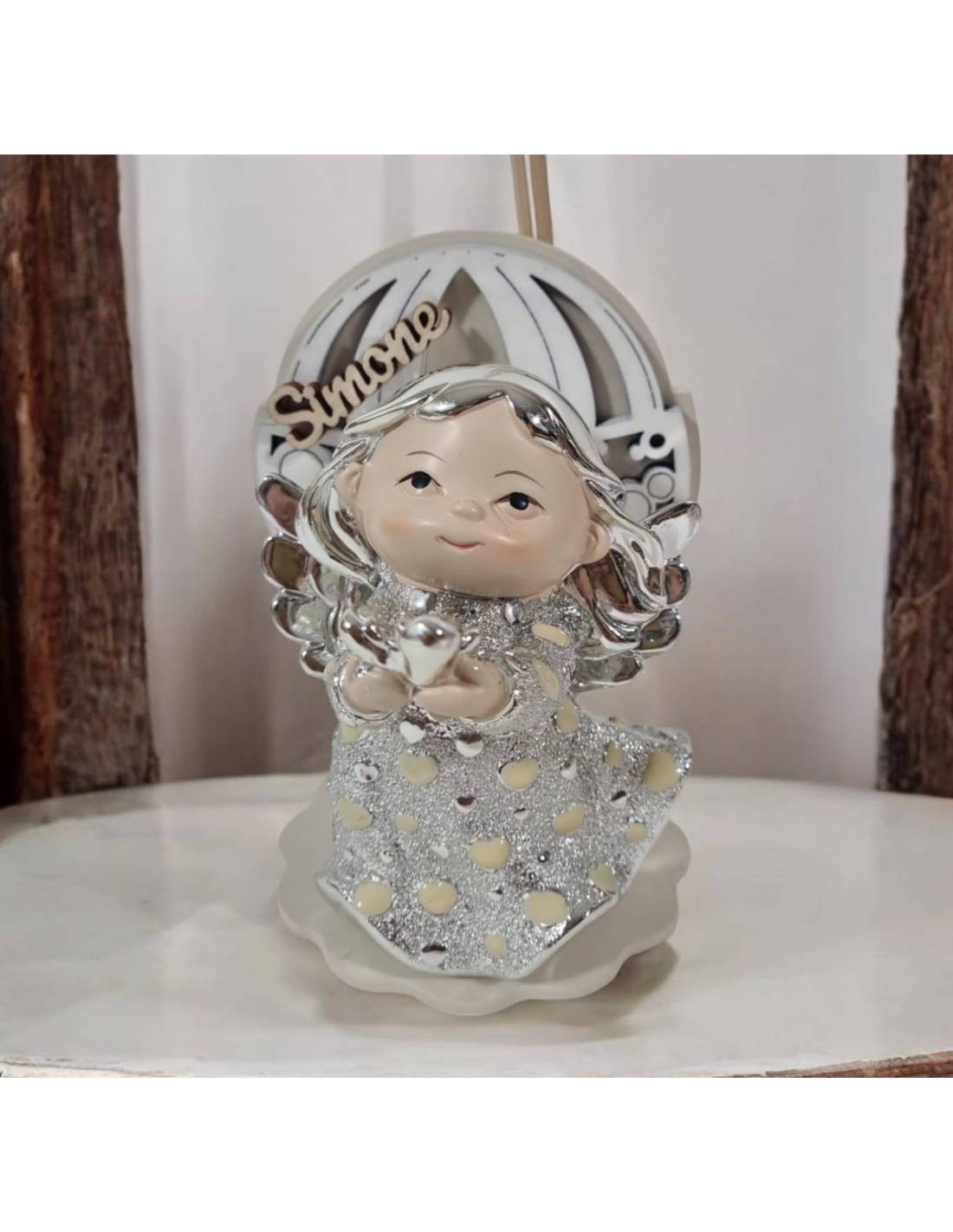 Bomboniere Prima Comunione originali con angelo argentato e madre perla con possibilità di personalizzazione nome.