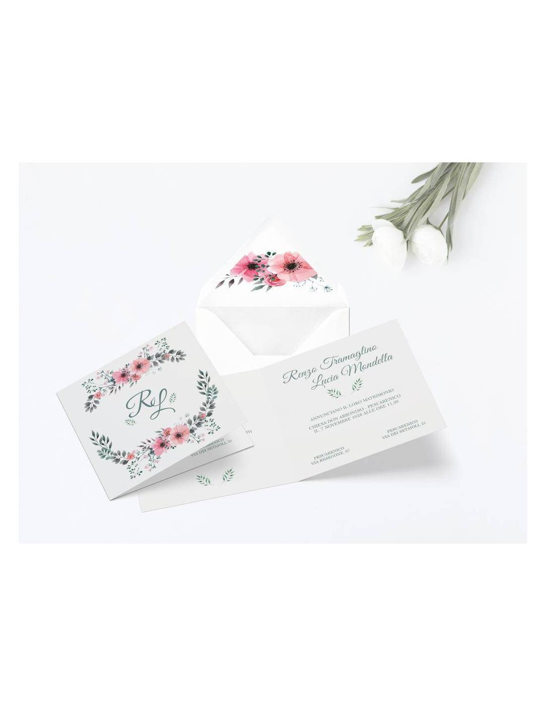 Inviti nozze con anemoni papaveri e fiori stilizzati