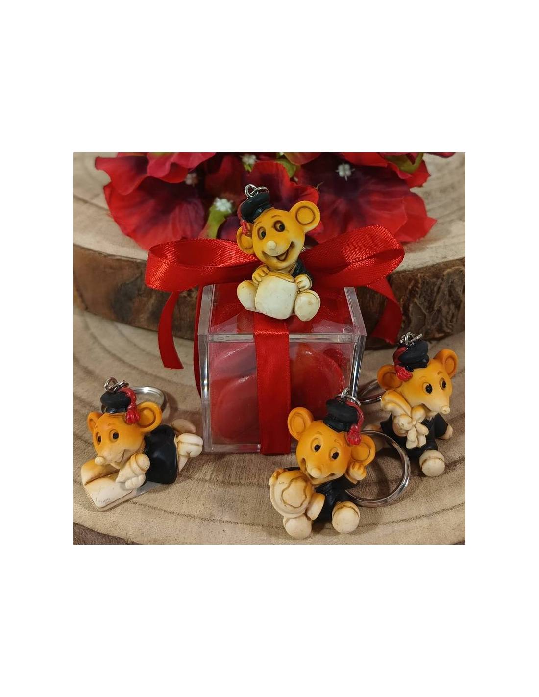 Portachiavi laurea bomboniere animaletti topolini misti come in foto su scatoline portaconfetti.