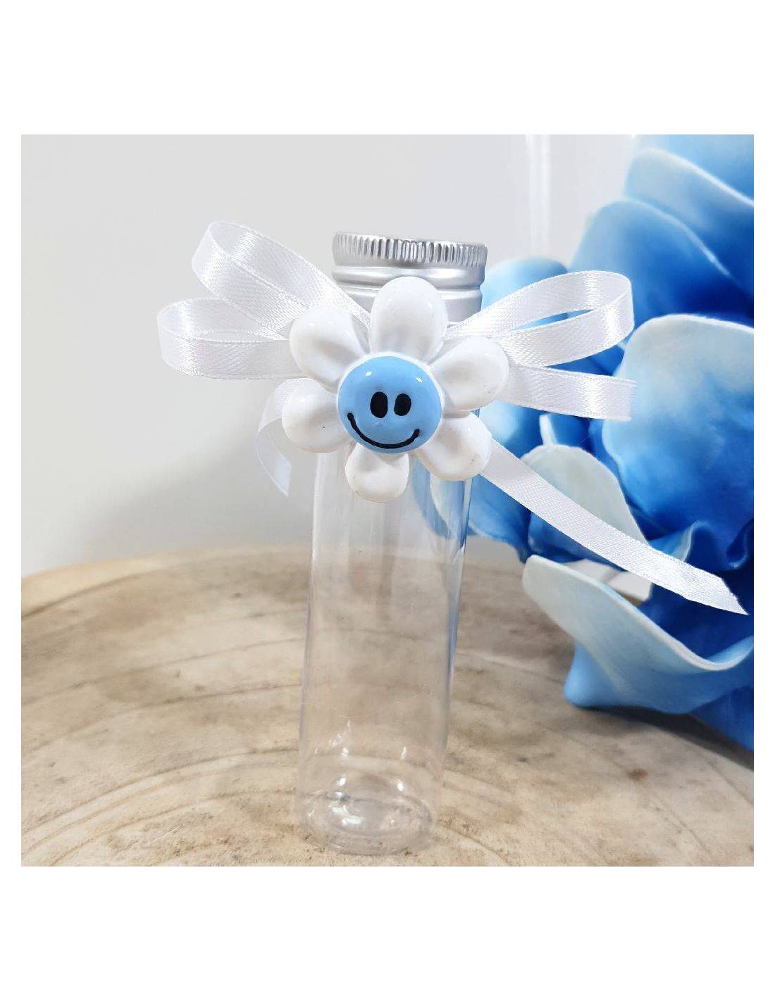 Ecco qui delle simpatiche provette nascita con magnete smile a forma di margherita.