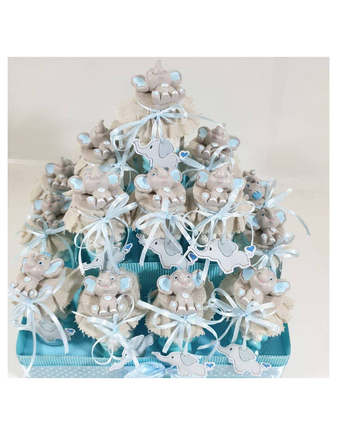 Nel prezzo sono inclusi 5 confetti al cioccolato con zuccherini che dovrete inserire voi stessi all'interno. Anche i bigliettini a forma di elefantino arriveranno non attaccati per darvi la possibilità di scrivere il nome.