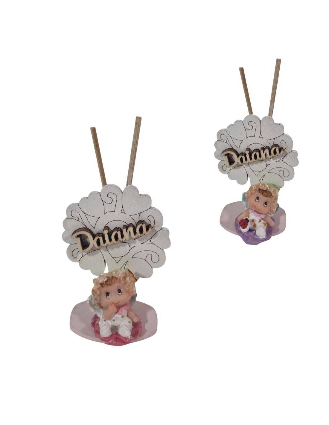 Bomboniere angeli profumatore con nome personalizzato sul legno