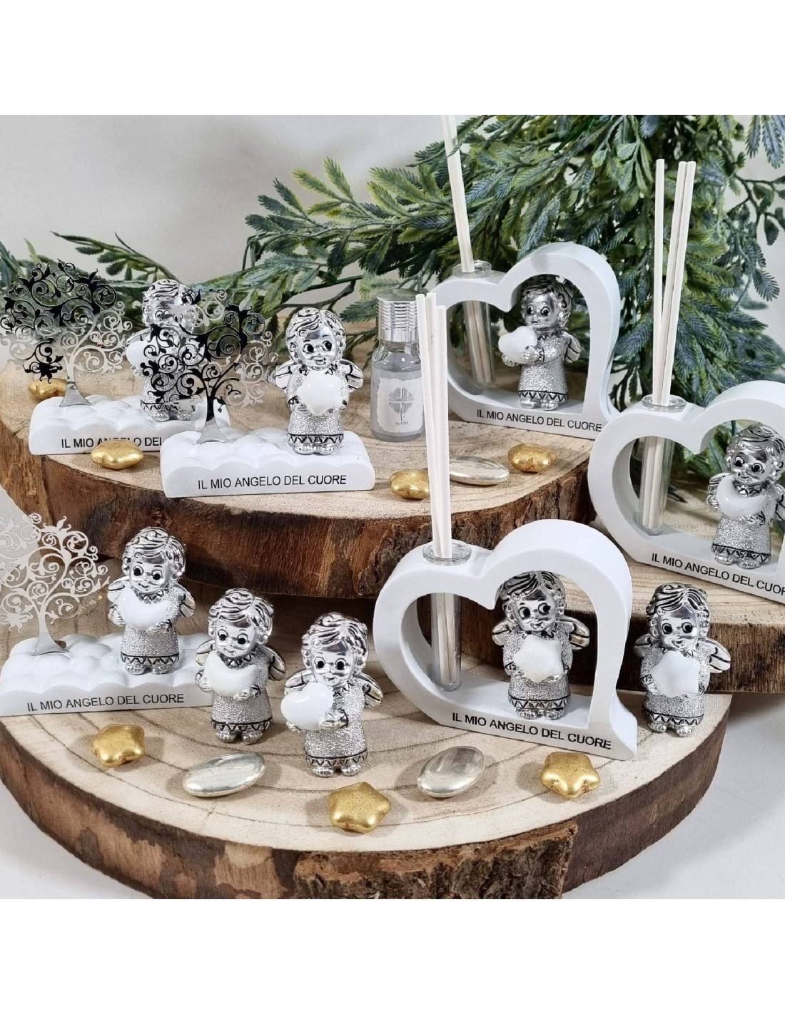 Profumatore bomboniere solidali angeli argentati nel cuore bianco