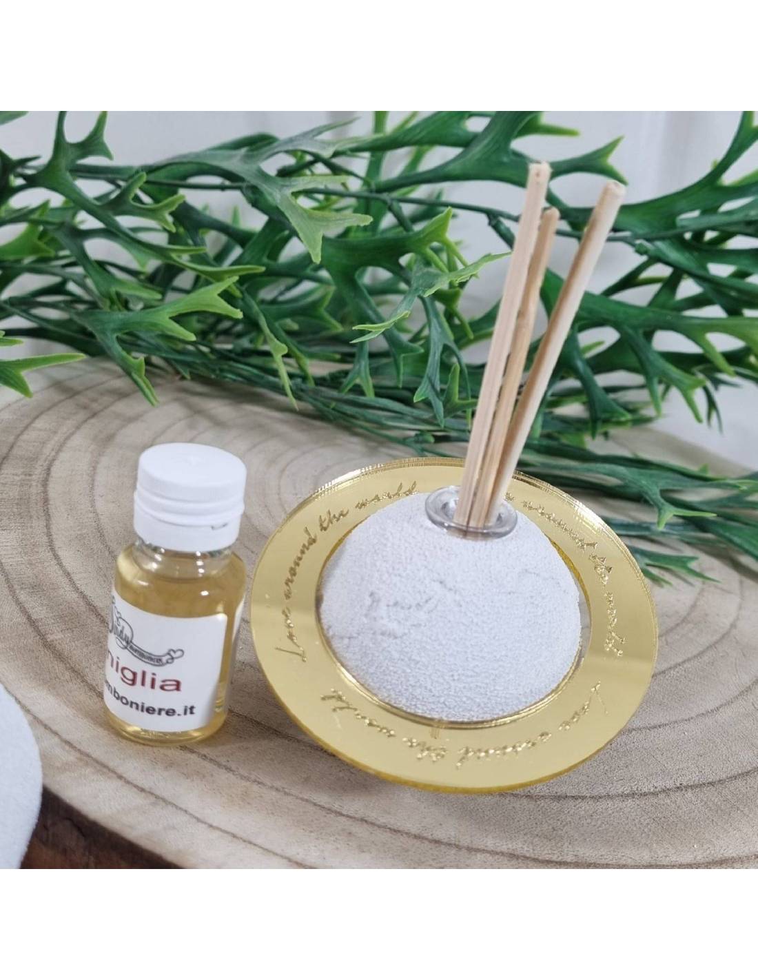 Bomboniere profumatori con un con globo bianco con anello dorato.