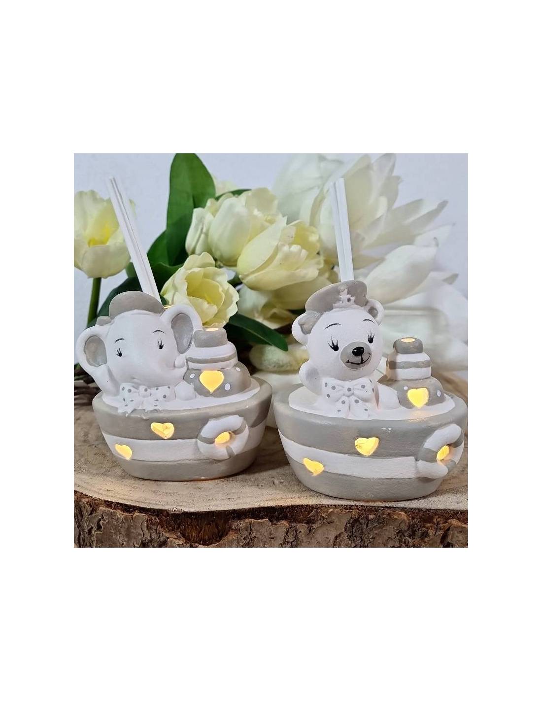 Orsetto elefante profumatore su barca ideali bomboniere Battesimo profumatori o per Comunione, Cresima e altri eventi.