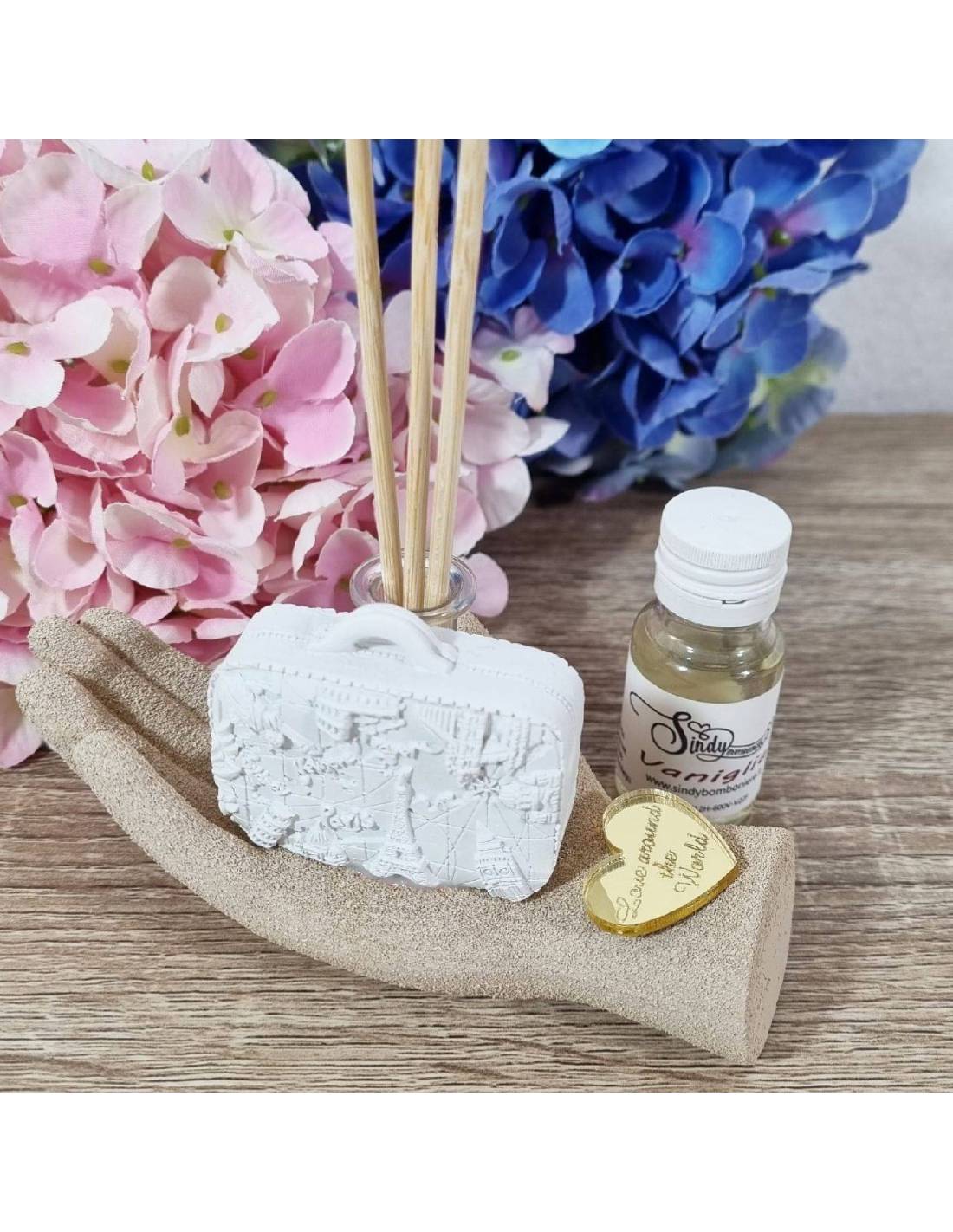 Bomboniere matrimonio diffusore d'ambiente con scatola regalo, bastoncini e profumo.