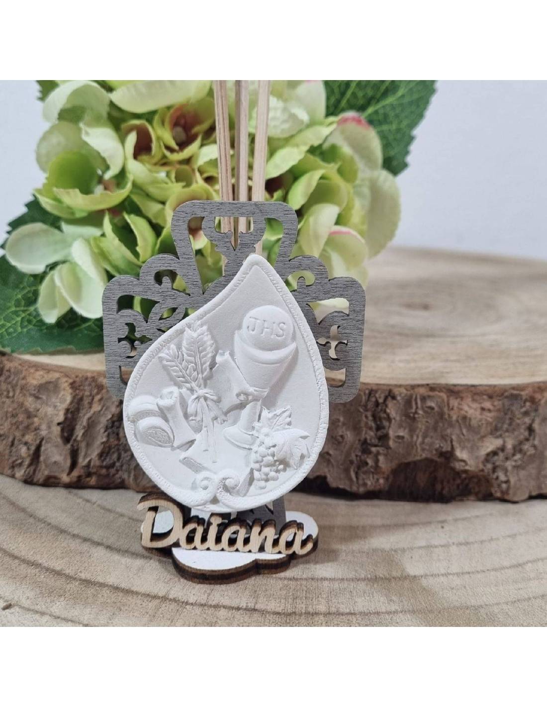 Bomboniere Comunione bambina originali e sacre che con le mani giunte in preghiera si accinge a ricevere il sacramento.