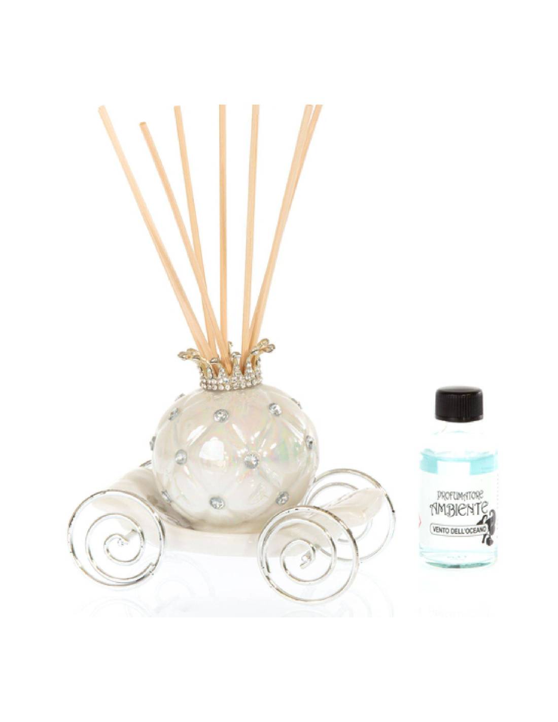 Profumatore carrozza bianca in ceramica con motivo trapuntato e strass per renderla elegante per una vera principessa.