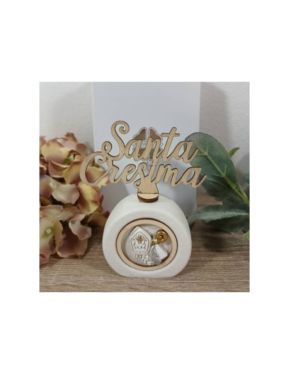 Profumatore bomboniere per Cresima a forma di stella in polvere di ceramica bianca con simbolo Cresima.
