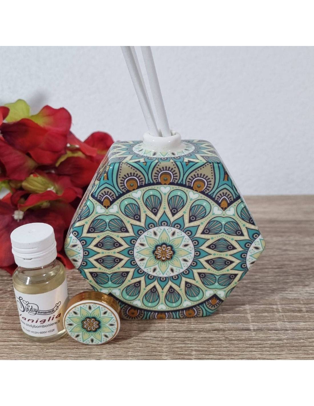 Questo bellissimo profumatore esagonale fantasia cashmere in ceramica è perfetto come bomboniera per matrimonio.