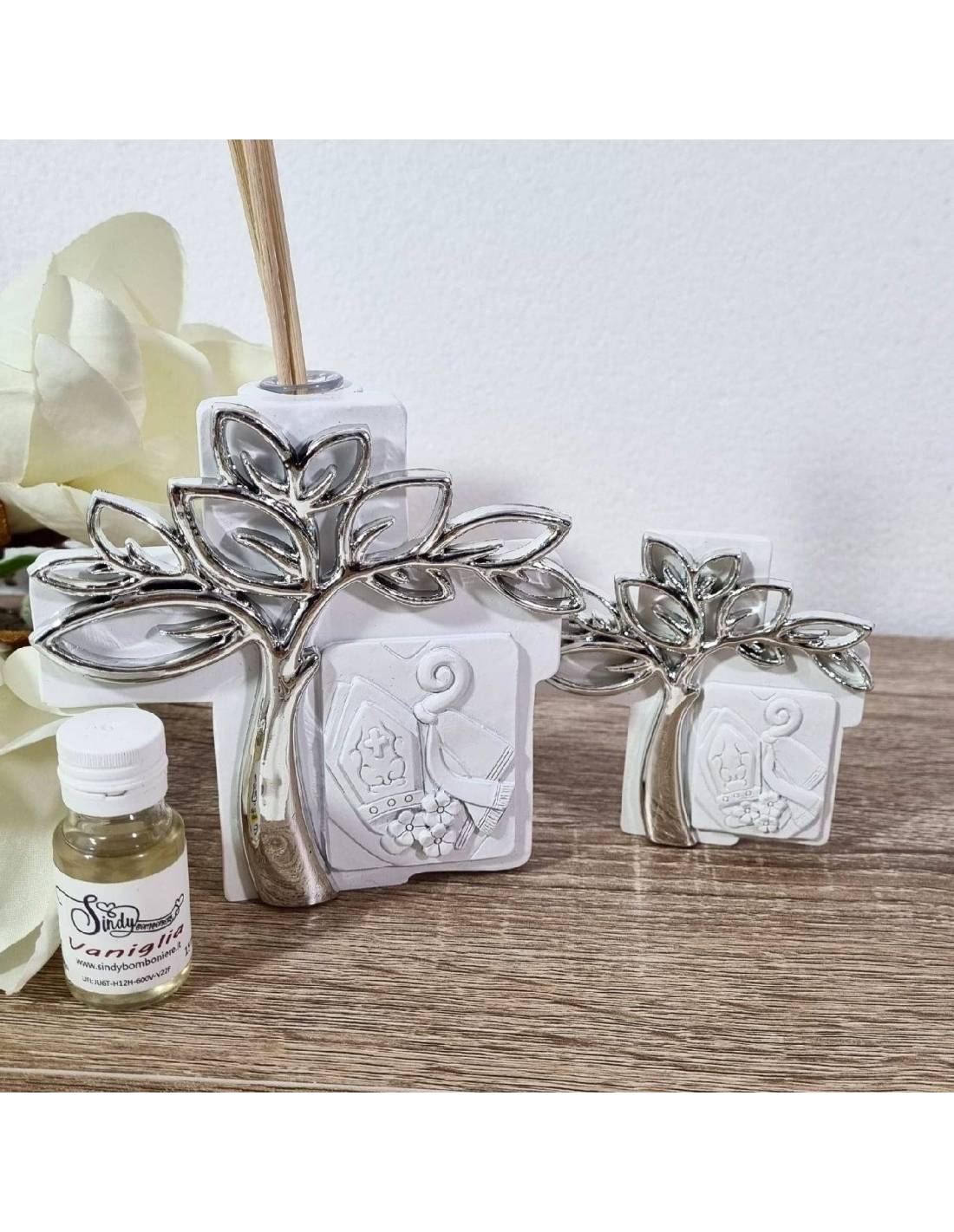Profumatore albero della vita Cresima bianco e argentato