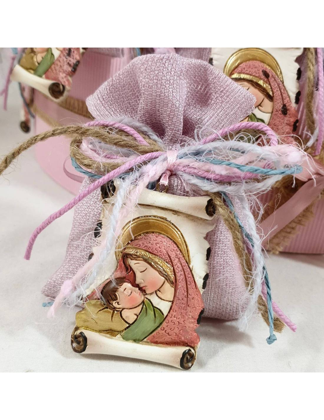 Bomboniere Battesimo bimba sacra famiglia sacchetti per confetti