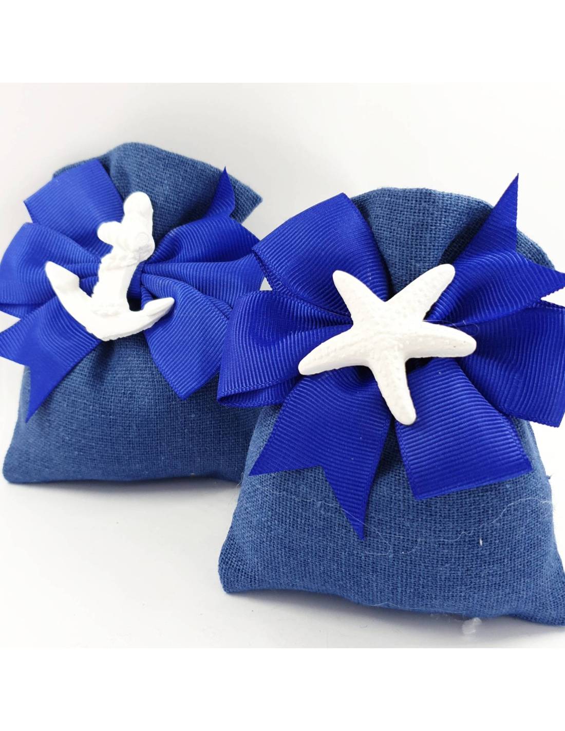 Sacchetti bomboniere stile mare ancora e stella marina Battesimo