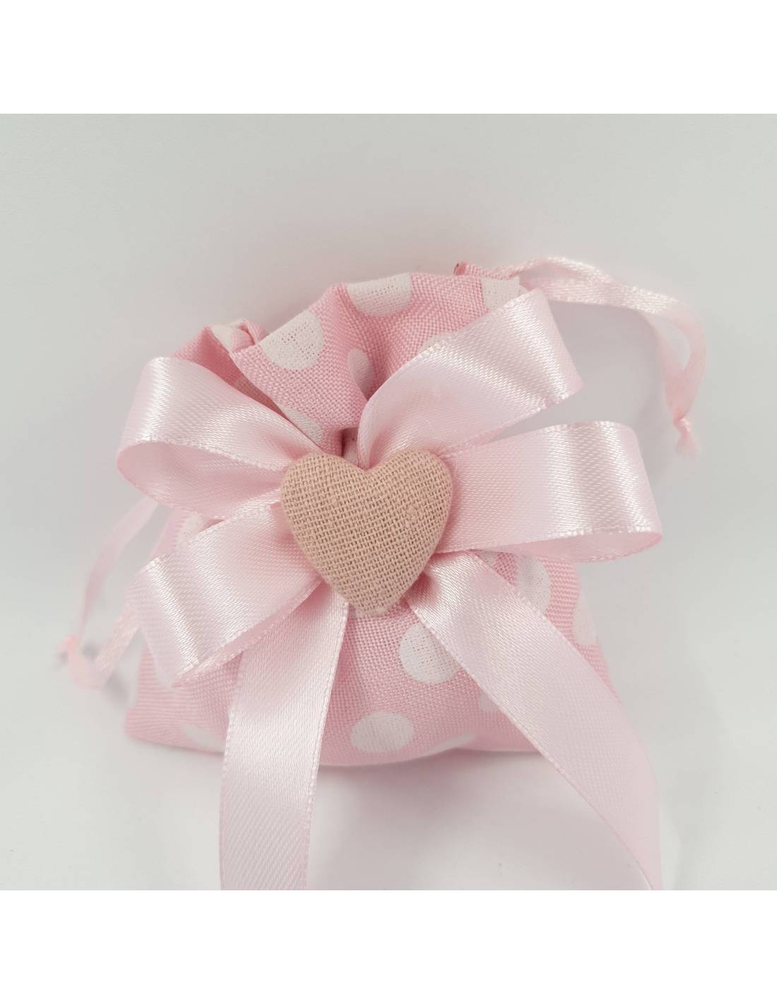 Sacchetti rosa a pois in cotone con fiocco cuore