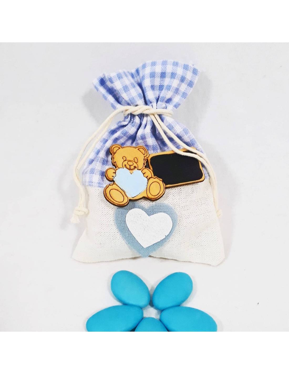 Bomboniera porta confetti sacchettino e orsetto Battesimo bimbo