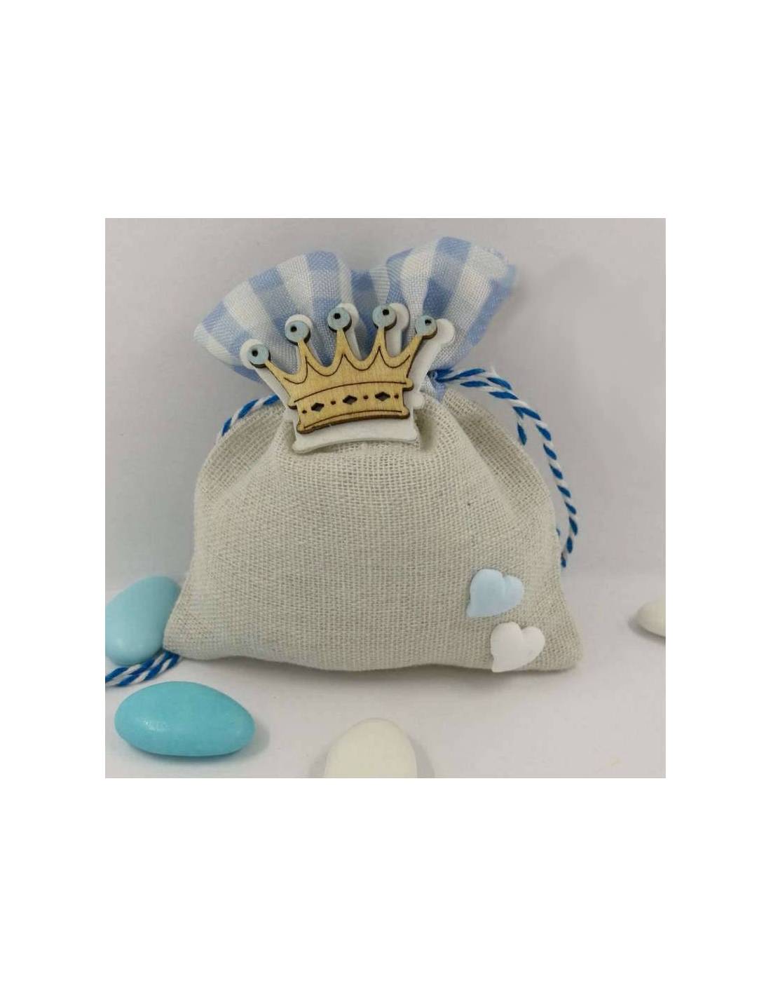 Sacchetti bomboniere battesimo bimbo corona e cuoricini