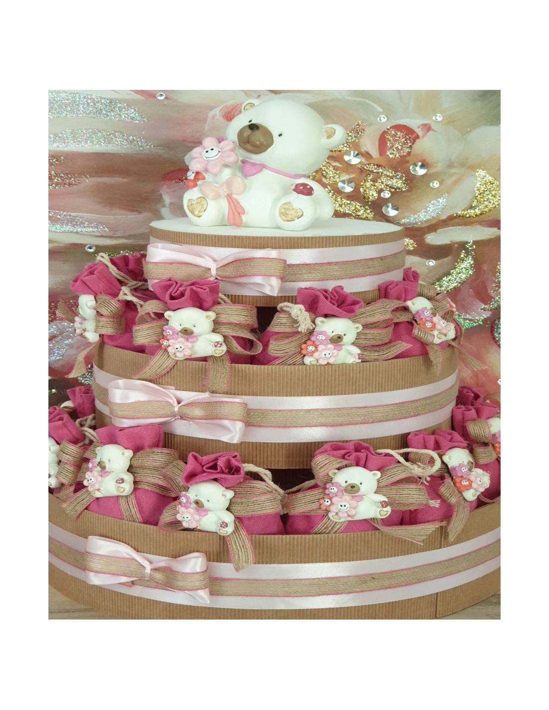 Torta bomboniera SACRA FAMIGLIA con porta confetti per battesimo, cresima bambina