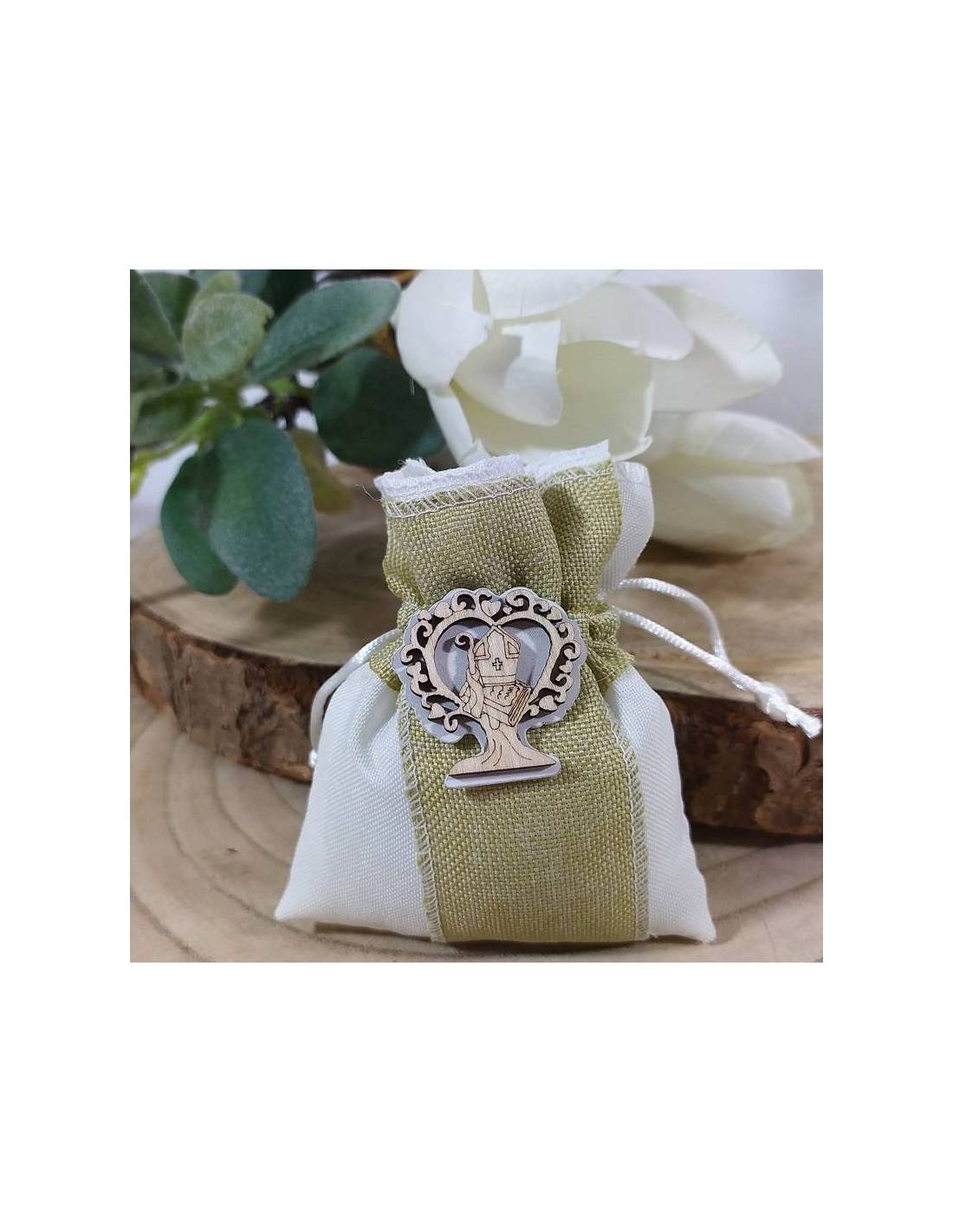 Sacchetti cresima economici applicazione legno quadrifoglio