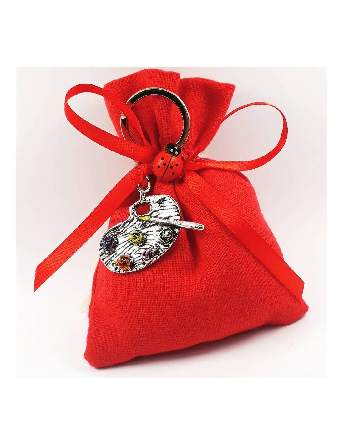 Bomboniere laurea sacchetti rossi con pendente ciondolo tavolozza da pittore