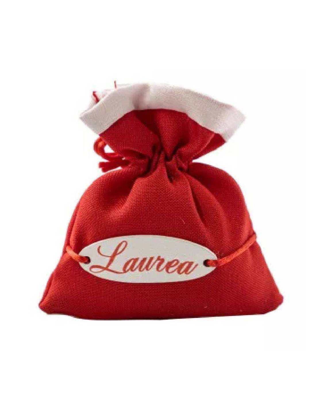 Bomboniera laurea fai da te con simboli laurea e tocco rosso in zama con nappa rossa.