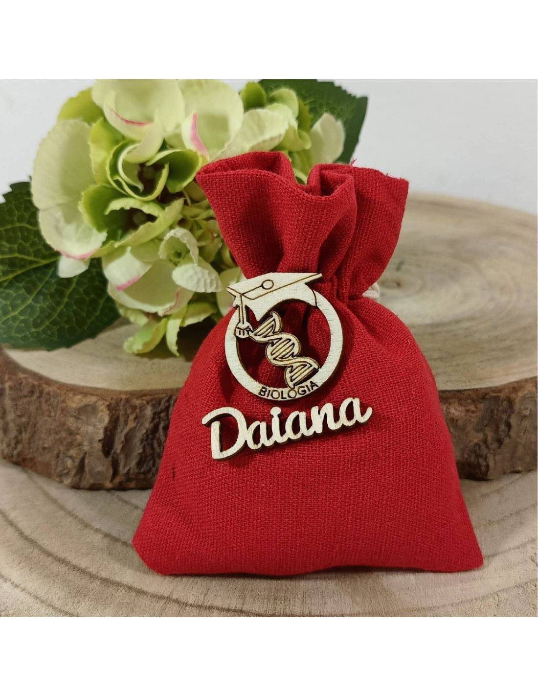 Bomboniere laurea online biologia! Sacchetti bomboniere laurea in offerta con applicazione DNA e nome in legno.