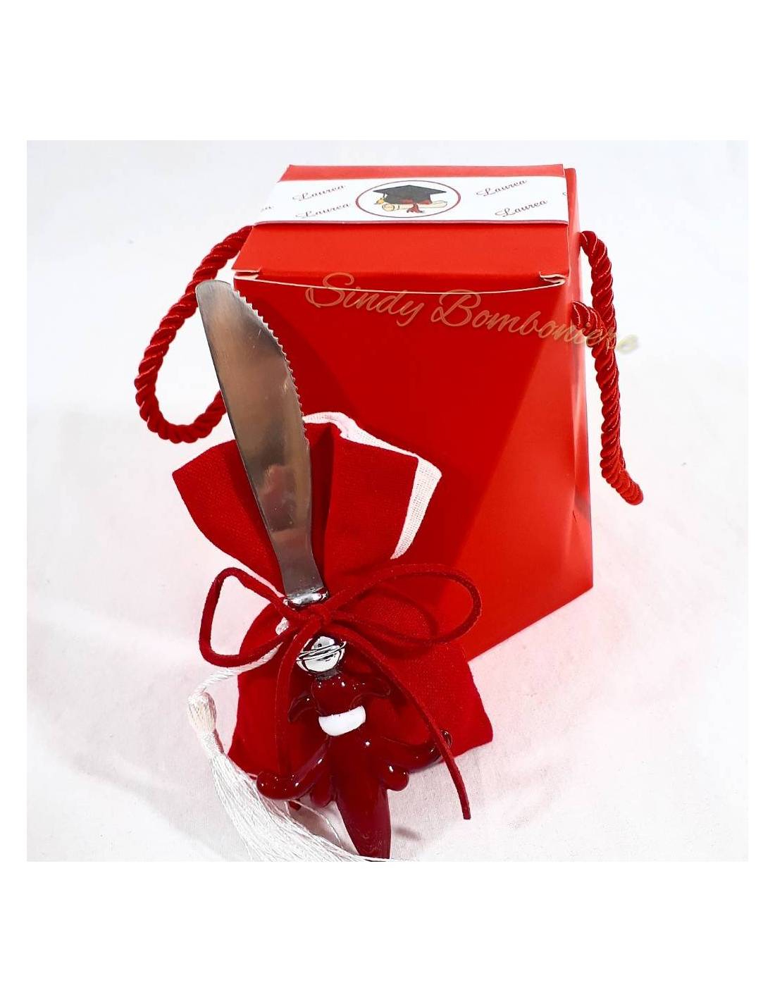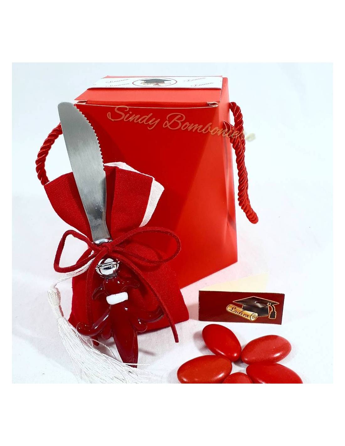 Sacchetti per laurea con applicazione a forma di tocco e scritta "laurea" che li rende leganti.