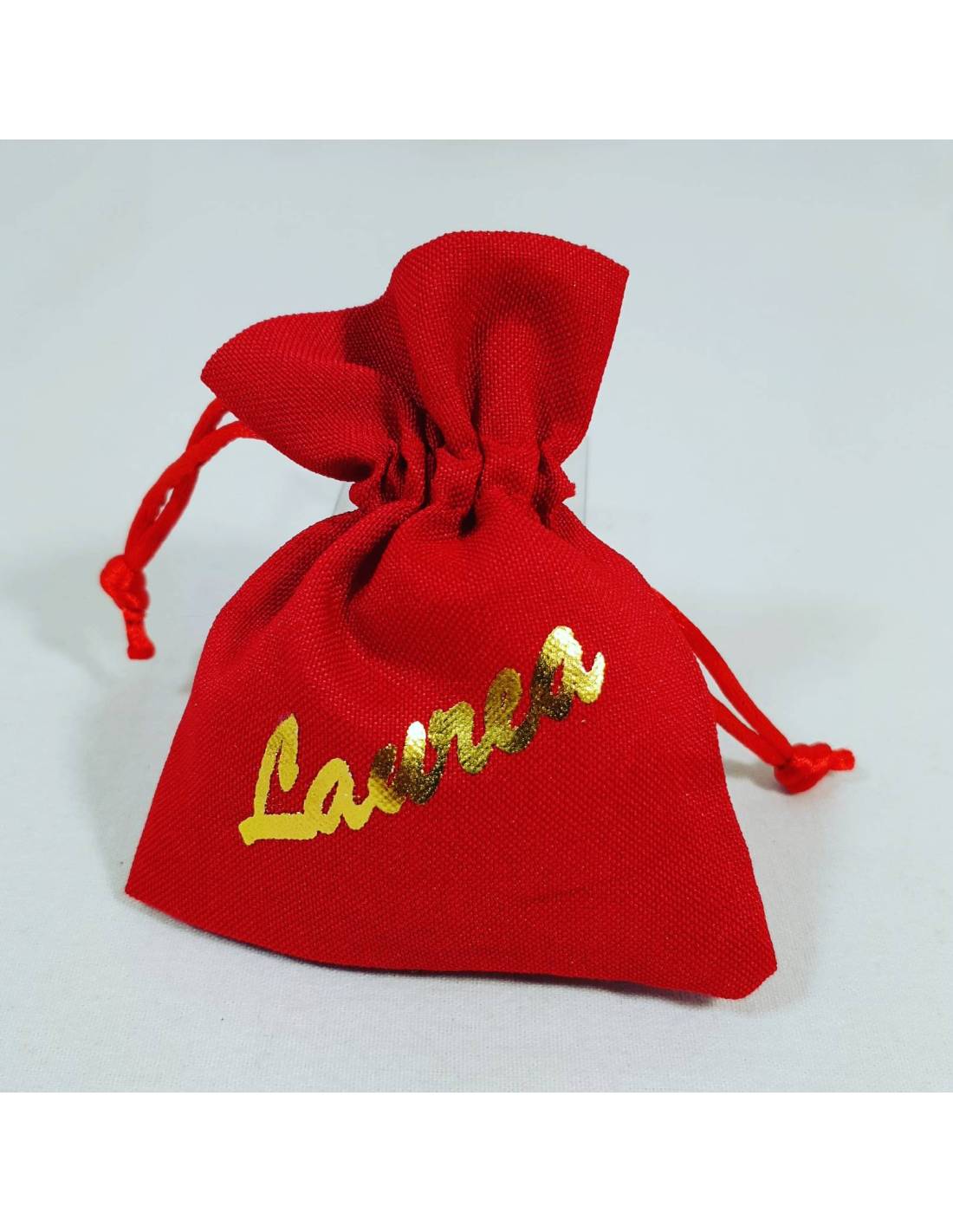 Tocco portaconfetti in velluto rosso e nero.