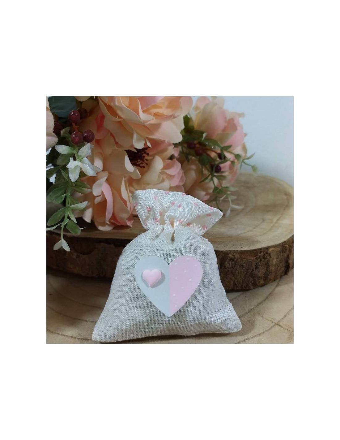 Sacchetti in juta morbido bicolore cioè tortora e beige con rete azzurra.