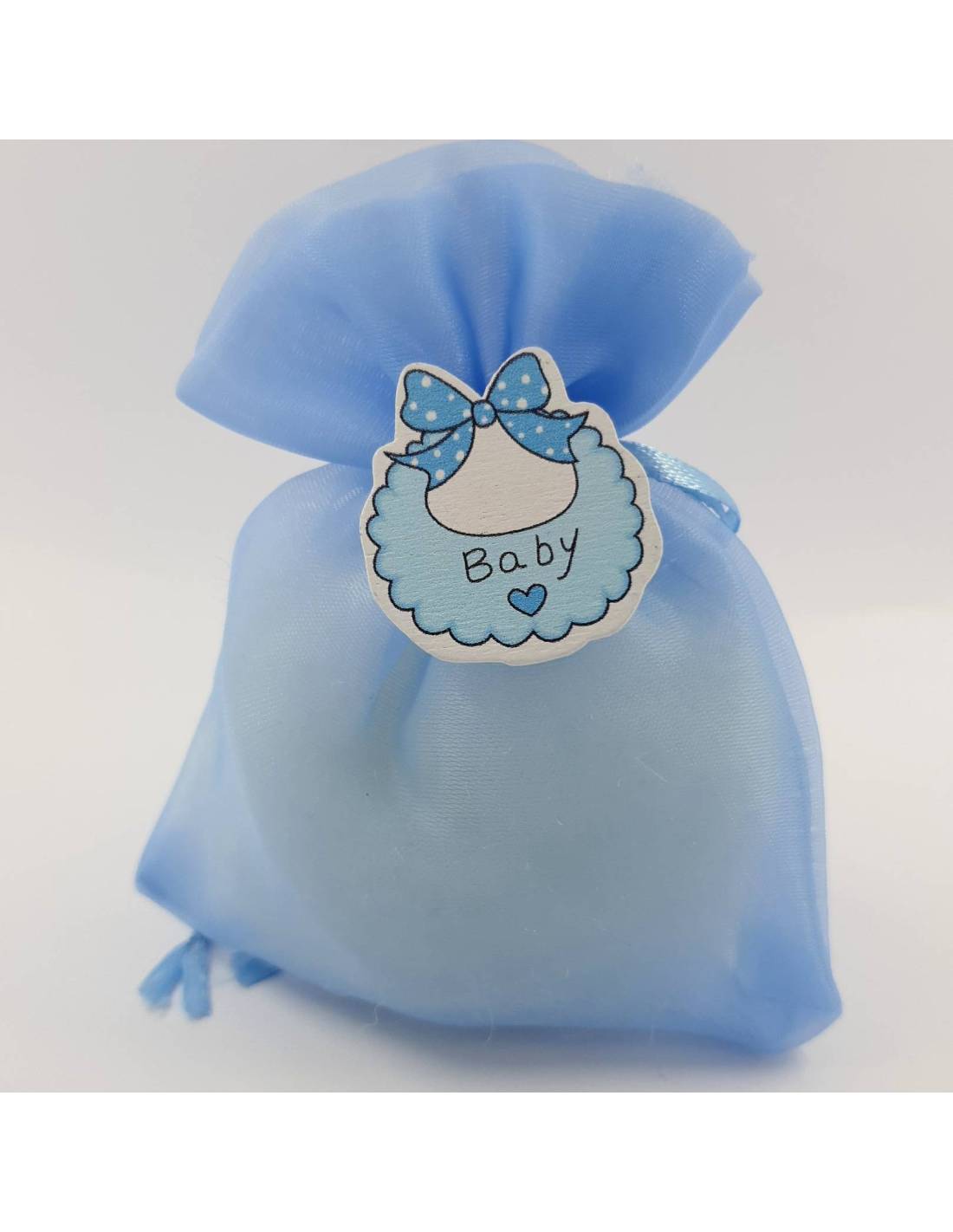Bellissimo sacchetto rosa con applicazione in legno con scritto "Baby"