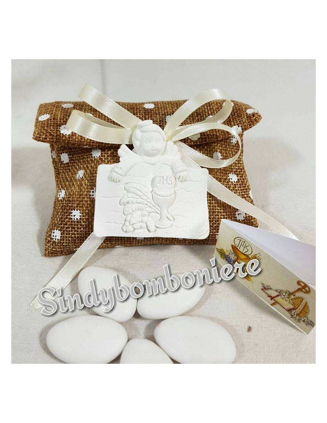 Sacchetti Comunione portaconfetti bomboniere con Angelo gessetto profumato