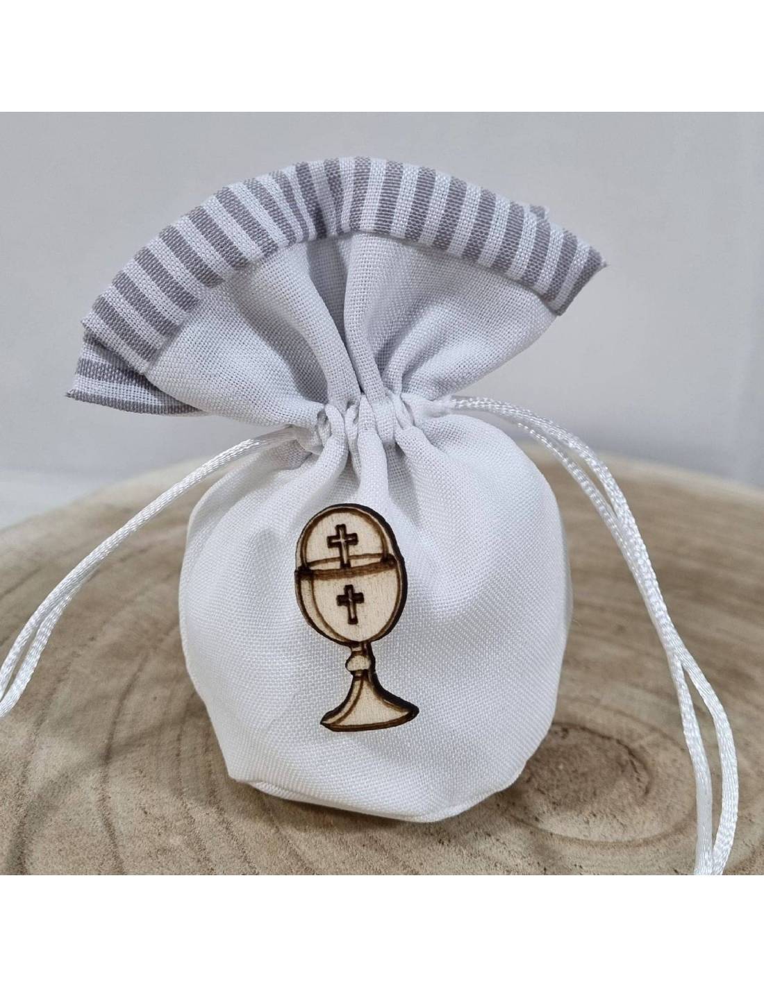 Sacchetti portaconfetti con tirante laterale facile da chiudere dopo aver inserito all'interno i confetti.