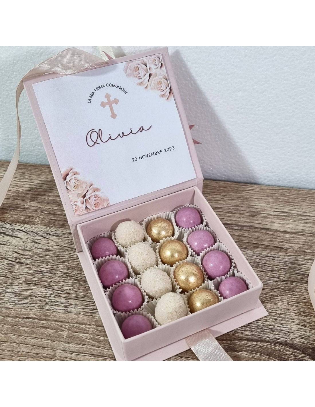 Per la Prima Comunione di una bimba queste scatole degustazione Prima Comunione con fiocco già pronto solo da incollare esternamente sul coperchio, sono un ricordino veramente particolare.