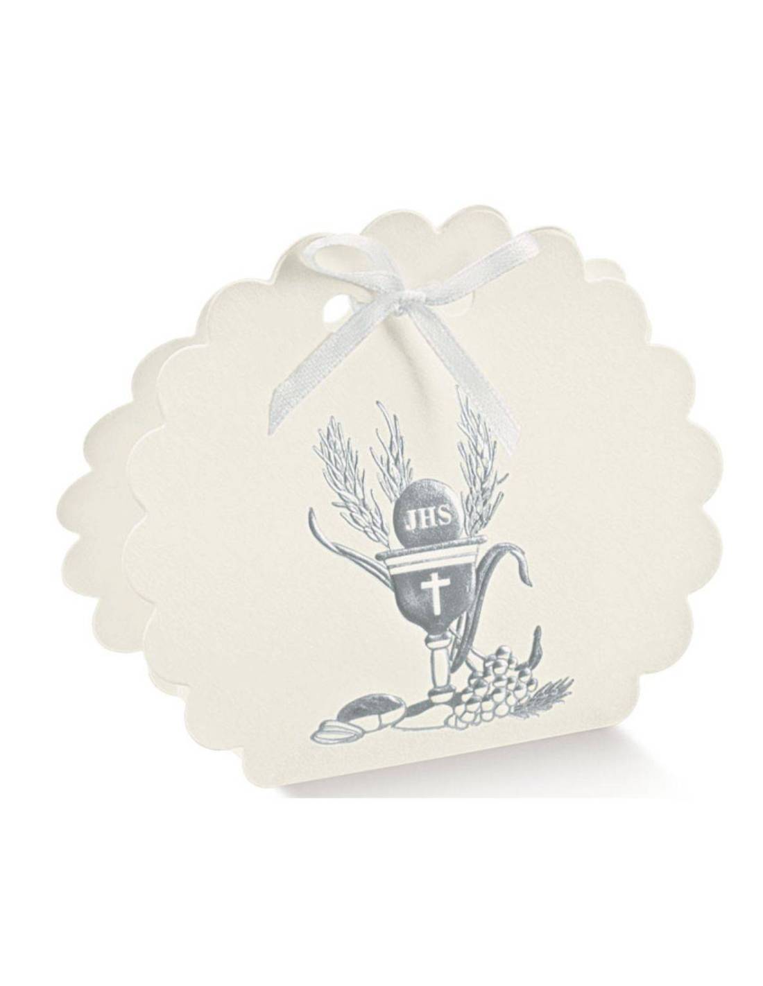si presenta con un astuccio a bordo ondulato e stampa in rilievo dei simboli Sacri della Comunione.