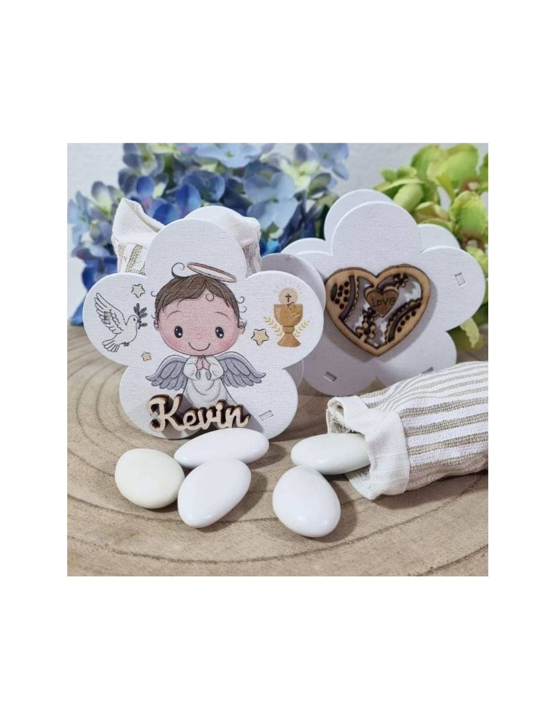 Scatoline tao originali portaconfetti Prima Comunione a stock nome legno