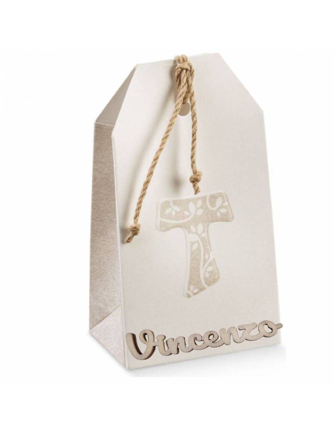 Scatoline tao originali portaconfetti Prima Comunione a stock nome legno