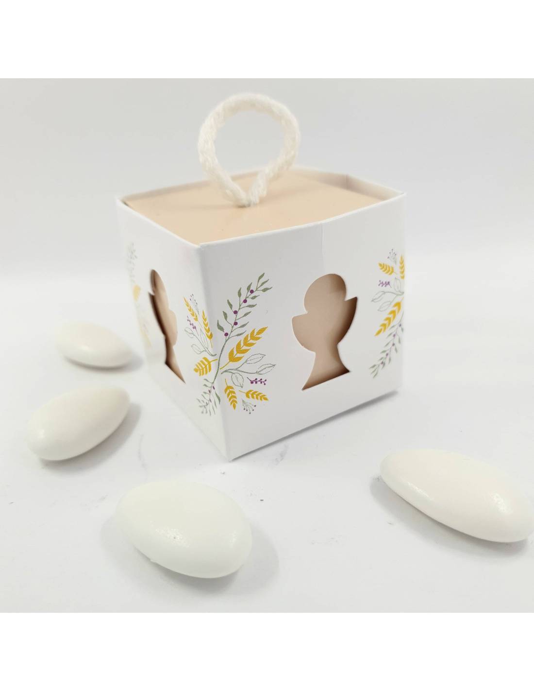 Una delle nostre scatoline per confetti da Comunione forma quadrata con angoletto.