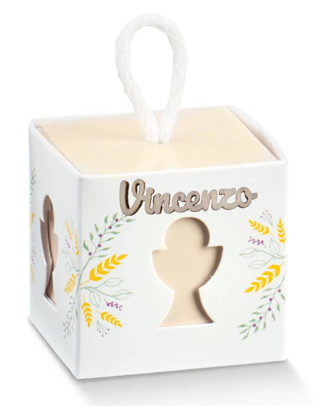 Scatolina portaconfetti comunione sagoma calice con nome legno