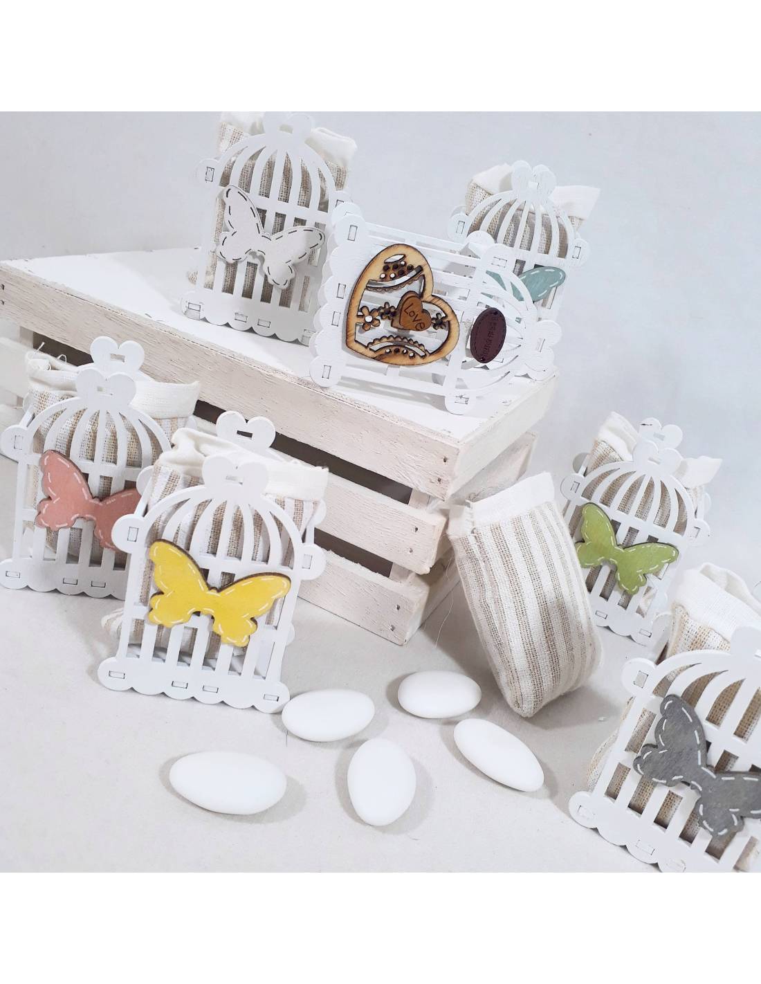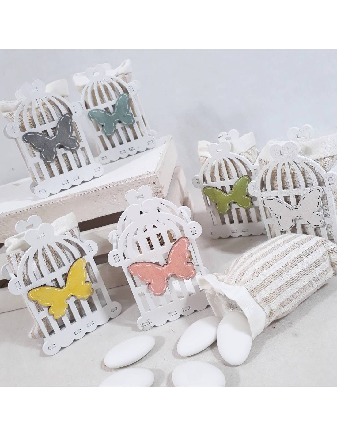 Portaconfetti prima comunione gabbietta farfalle colorate