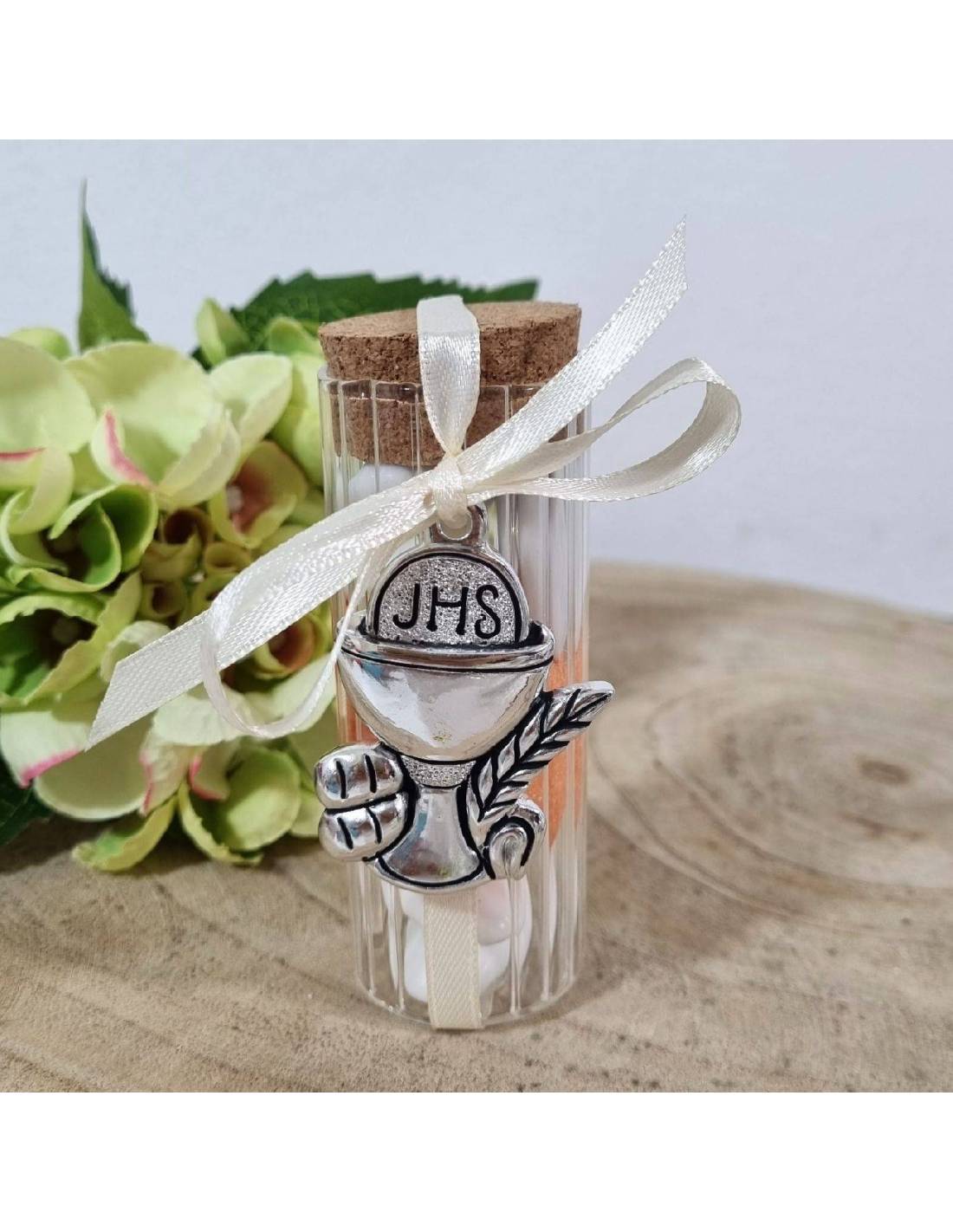 Barattolo bomboniera in Vetro con coperchi in Sughero Comunione con pendente calice