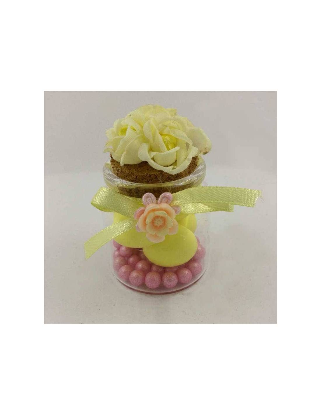 Vasetto portaconfetti Comunione tappo con fiori gialli| Sindy Bomboniere
