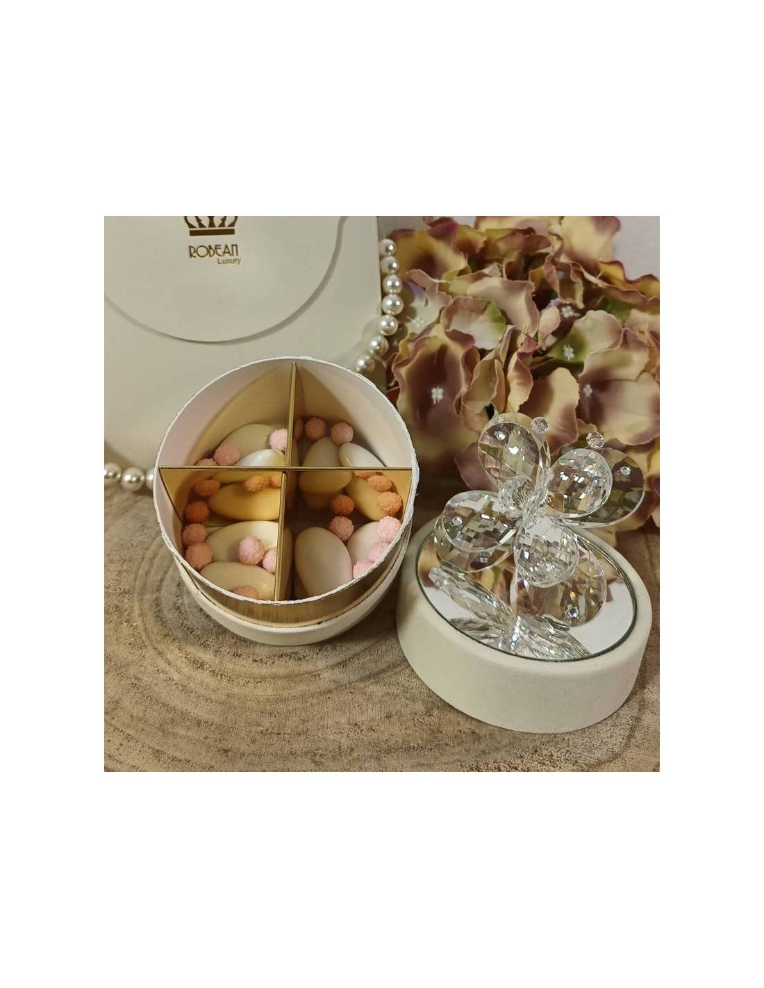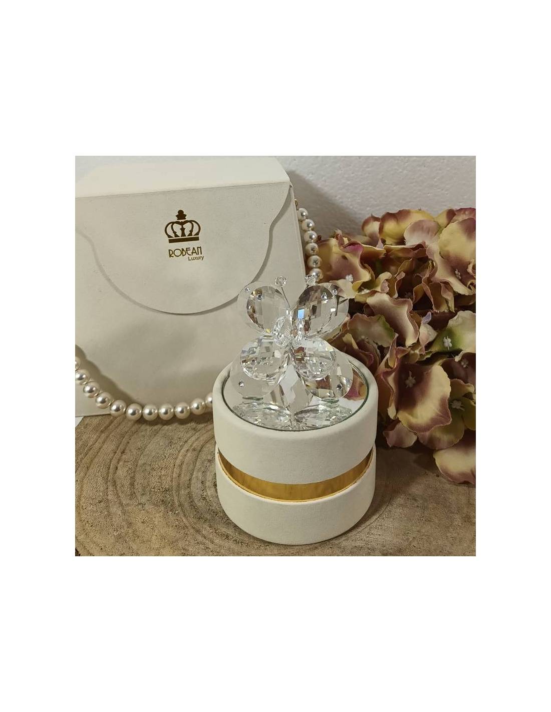 Scatole degustazione confetti eleganti con farfalla in cristallo | Sindy Bomboniere