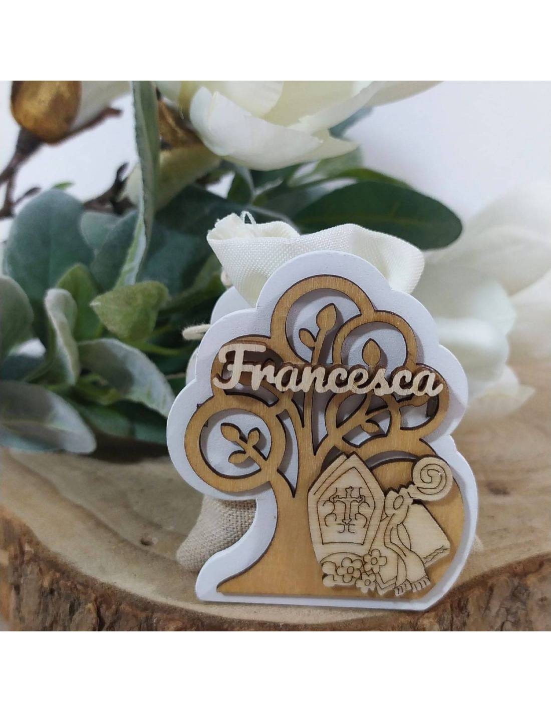 Particolare bomboniere Cresima, torta con pendente Albero della Vita