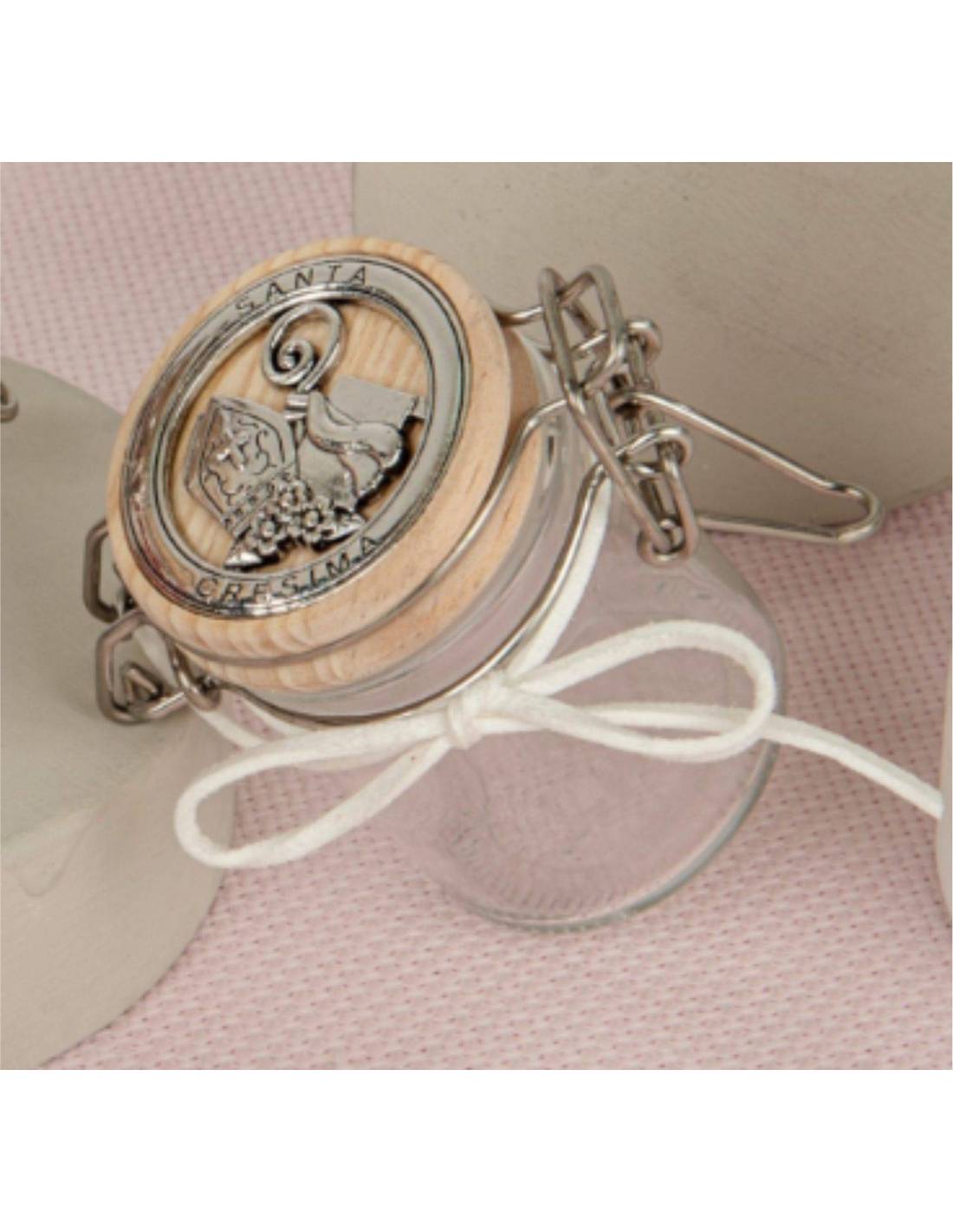 Portaconfetti Cresima a forma di albero bianco con l'icona sacra della mitria centrale di color legno naturale nome...