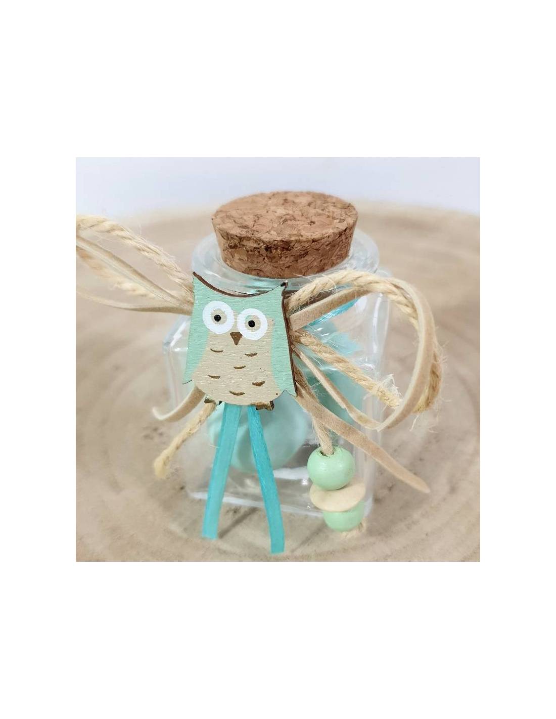 Portaconfetti vasetto tappo in sughero per Battesimo bimbo gufetto